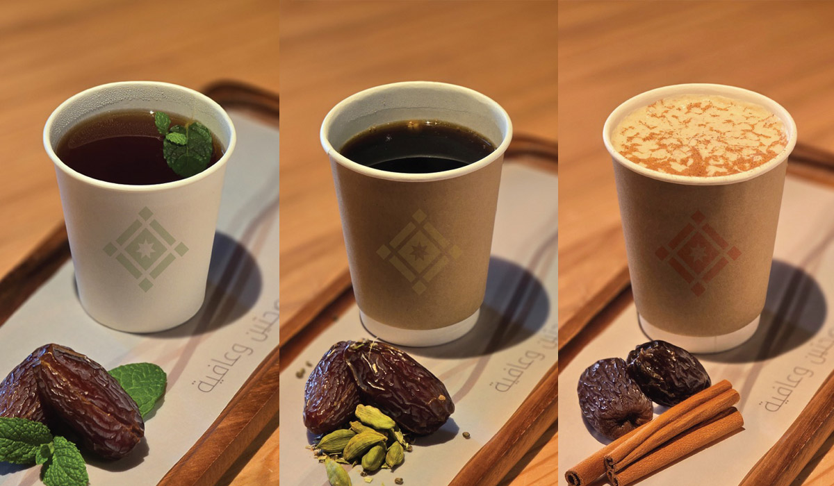 1階のカフェラウンジでは、ヨルダンコーヒーやデーツシェイクなど、ヨルダン名物を味わうことができます。ヨルダンコーヒーは、カルダモンなどのスパイスが効いた独特の香りが特徴のすっきりとした味わい。