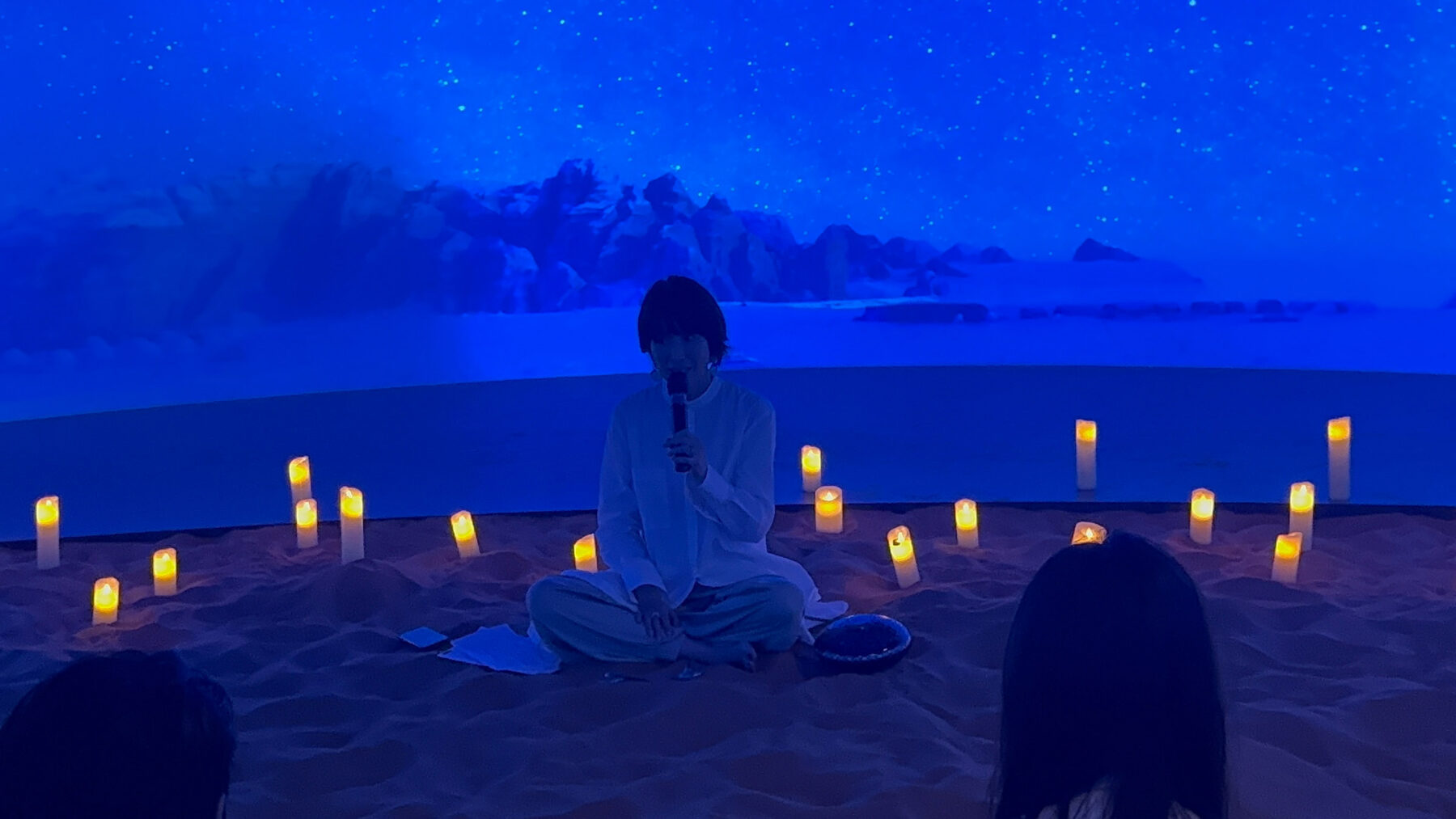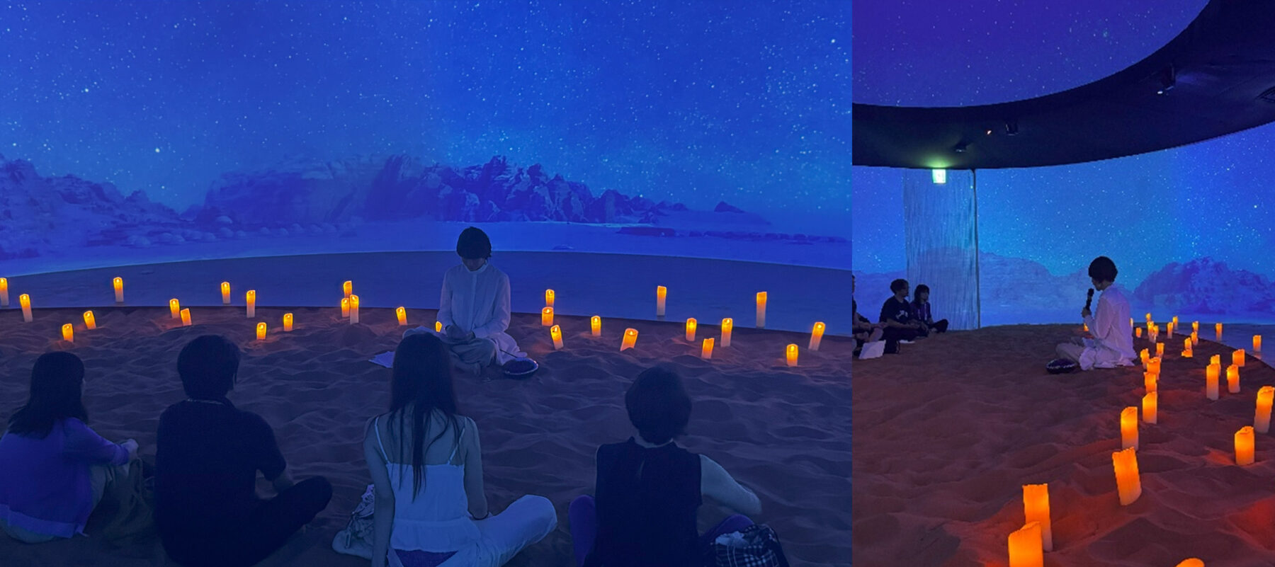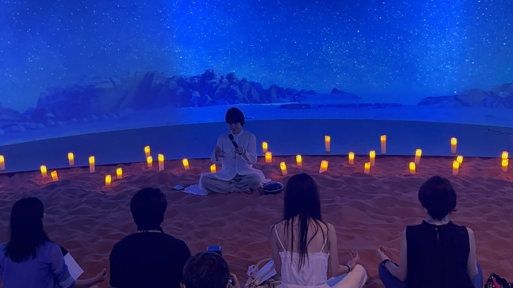 内田氏 ヨルダン館の「砂漠ドーム」には、本国の「ワディ・ラム砂漠」から運ばれたサラサラで美しい砂が敷き詰められています。その砂漠のなかで、何もせず、自身の五感をつかって砂漠を体感してもらおうというイベントです。素足で砂漠に座り、夜空を見上げる、ホワイトセージの香を聞くなど、いずれも自身の五感を使うことです。そこにある感覚に集中できれば、働きづめの脳を休め、ヘルスケアに繋がるのです。